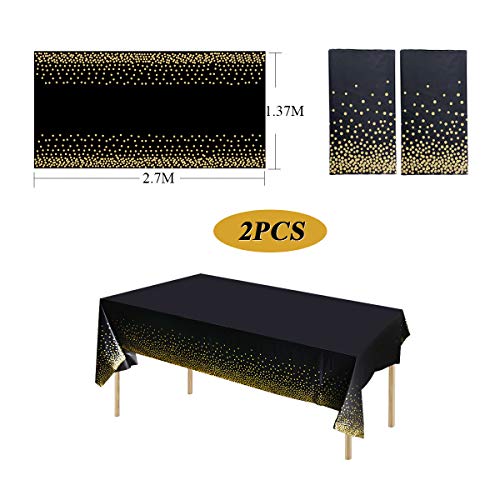 2pcs (137x270cm) Tovaglia Rettangolare Plastificata Impermeabile Copritavolo con Pois Dorati Tavolo per Decorazione Casa Cucina Feste Natalizia Laurea Compleanno Party Tavola (Nero+Pois in oro)