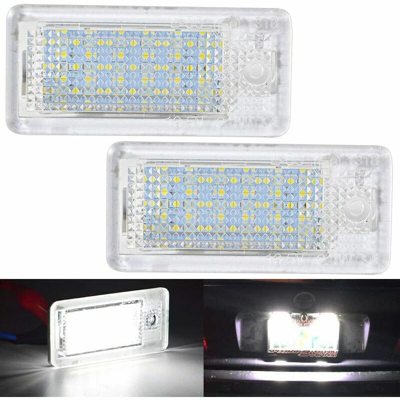 Luce targa bianca 2 x 6000K 18 LED Adatto per: compatibile con Audi A3 S3 A4 S4 B6 B7 A6 S6 A8 Q7 Applicazioni: placche luci Dimensioni del prodotto: 7 * 3,2 cm / 2,8 * 1,3 pollici (L * W), tensione: DC12V Evidenziare: ogni targa della lampada della targa è dotata di 18 LED SMD 3528 per produrre un super luminoso leggero. Installazione diretta, senza cablaggio o modifica, plug and play. Design senza errori.
