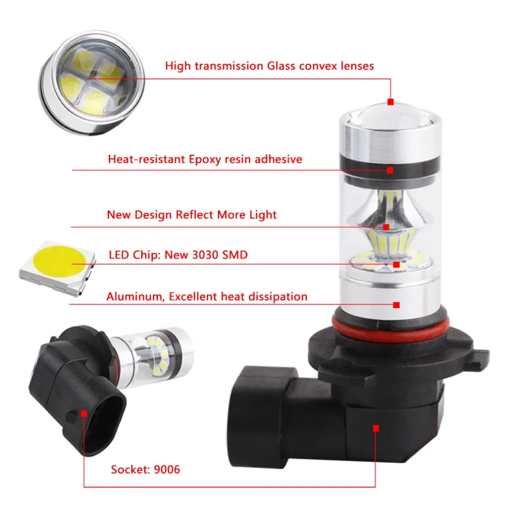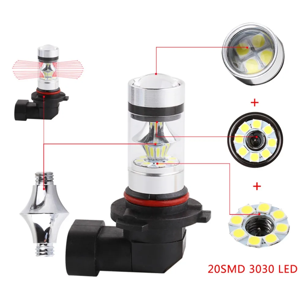 2Pcs 9005 HB3 LED Bulb High Bright Fog Lights DRL Driving Daytime Running Light Lamp 1250LM 12V - 24V Auto 6000K White
