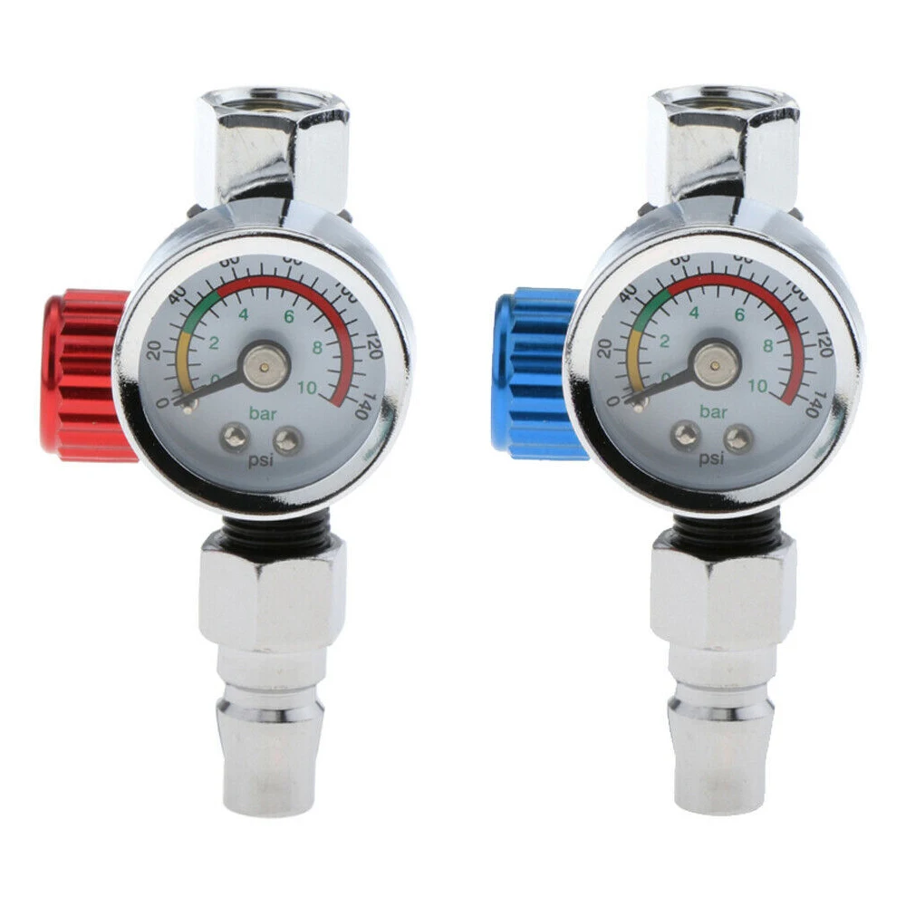 2pcs Alloy Blue Red Car Auto G1/4 Metal Paint Spray Tool Air Pressure Regulator Gauge 0-140PSI DIY Accessories Parts