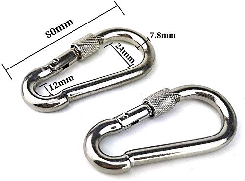 2PCS M8 304 anello girevole in acciaio inox con doppia estremità girevole e 2 moschettoni M8, per ormeggio marino, altalena girevole, amaca sospesa, dispositivo rotante da appendere