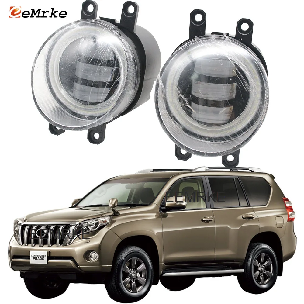 2Pcs Anti Fog Lights Lamp Car Accessories Full Led Angel Eye DRL for Toyota Land Cruiser Prado 2017 2016 2015 2014 Running Light
