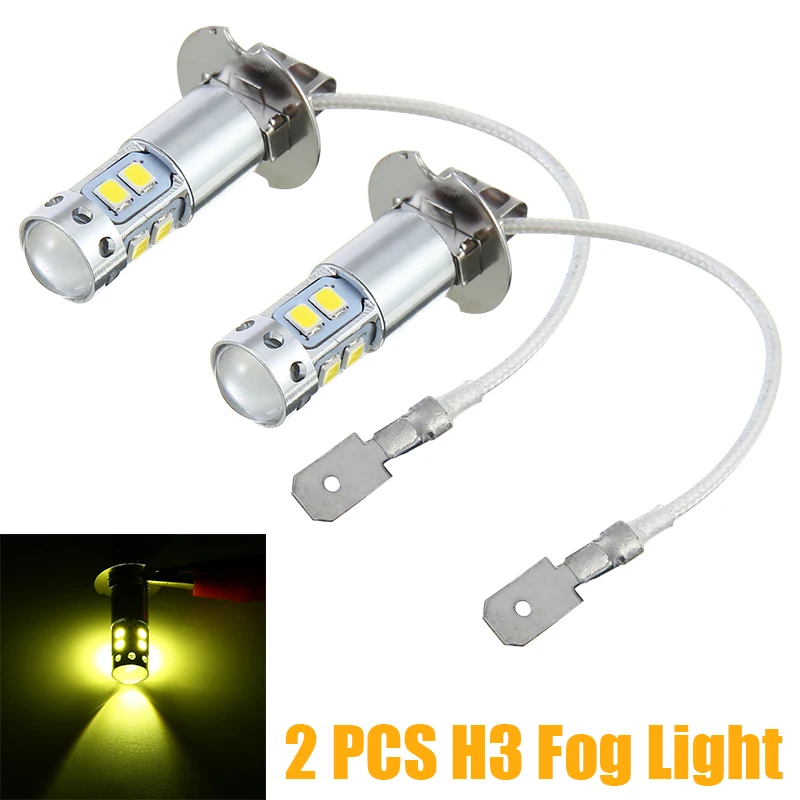 2pcs Car Auto H3 100W High Power COB LED 3000K 1800lm Yellow Fog Light Driving Bulb 360 Degree Beam Angle Day-time Running Lamp