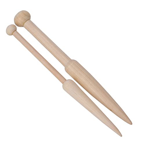 2Pcs Bobina Bastone di Legno di Faggio, Legno Tessitura Uncinetto Ago Singola Testa di Lana Solida Asta Corta per Tessuto Maglione Sciarpa Arazzo