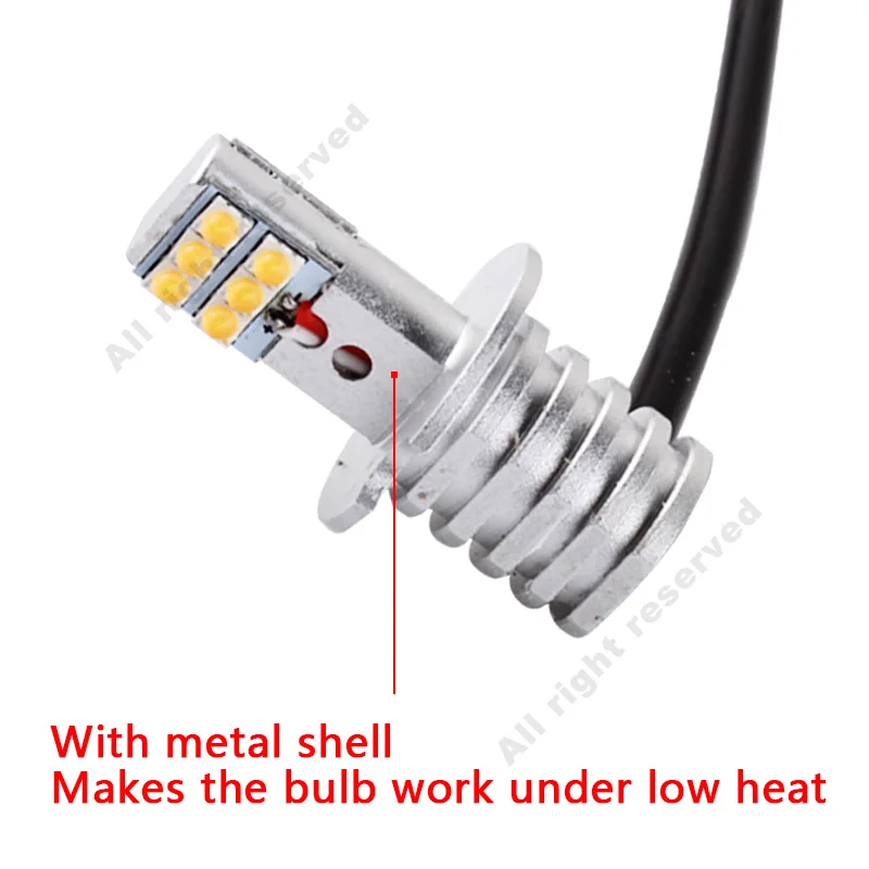 2Pcs H3 Led Bulbs SHARP Chip Led White 12-SMD 750LM DRL Daytime Running Lights Fog Lights Auto Leds Car Light Source Lamp 12V