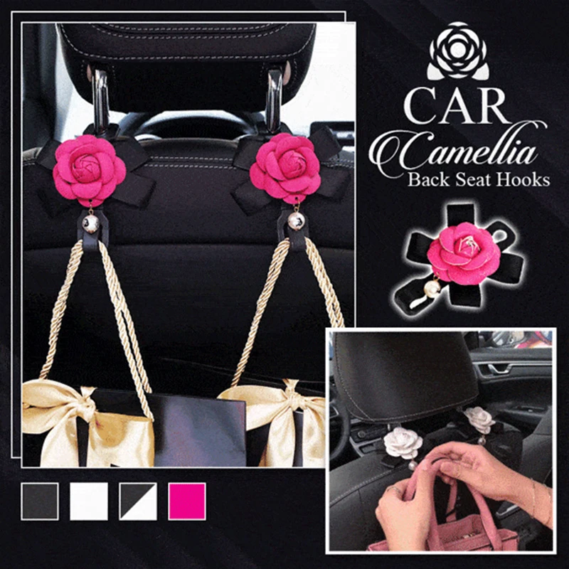 2PCS Car Camellia Back Seat Hooks Hanger Pearl Camellia Flowers Car Seat Back Hook Stowing Tidying Bags Hanger Accessories