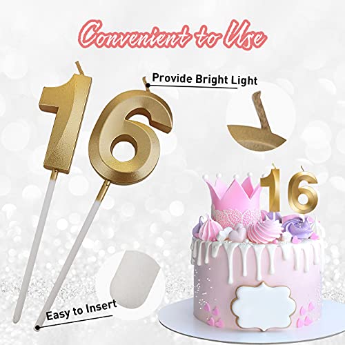 2Pcs Candele di Compleanno, Numero Candele Decorazione Candeline Torta Compleanno Candela Numero 1&6, Candele per Torta di Compleanno per Happy Birthday Cake Topper Festa Nozze Anniversario(Numero 16)
