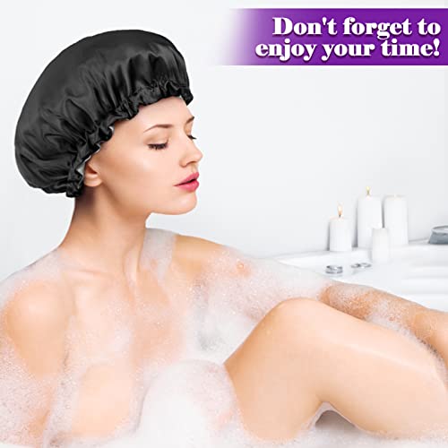 2pcs Cappello da Notte Raso, Cuffia Seta Capelli Ricci Cuffia da Bagno Cuffia Doccia Donna Doppio Strato Cuffia Capelli Notte per la Doccia, il Sonno, il Trucco(Nero, Porpora)