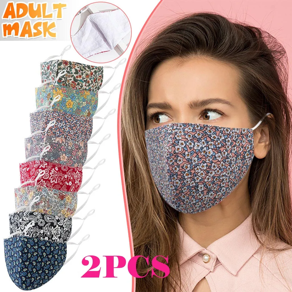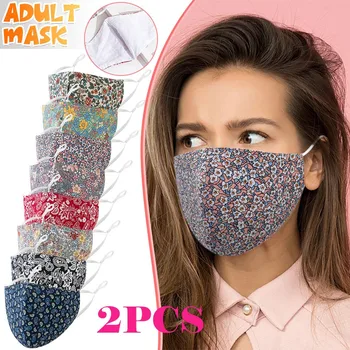 2PCS Cotton Print color Mask Mouth Face Mask Anti PM2.5 Dust Mouth Mask Activated Carbon Filter Mask Fabric Face Mask washable