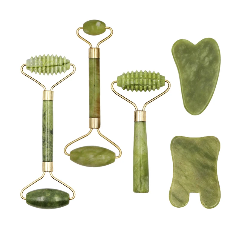 2pcs Facial Massager Roller Guasha Board Plate Natural Jade Stone Eye Neck Thin Lift Relax Slimming Face Massage Tools