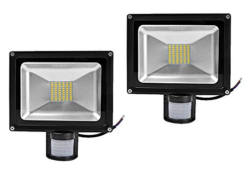2pcs 50W Faro SMD LED Bianco Naturale con Sensore di Movimento,ALPHA DIMA Luci di Sicurezza con PIR,Faro LED Faretto Impermeabile IP65 per Casa,Giardino,Garage,Luce Bianco Caldo(2800-3200K)