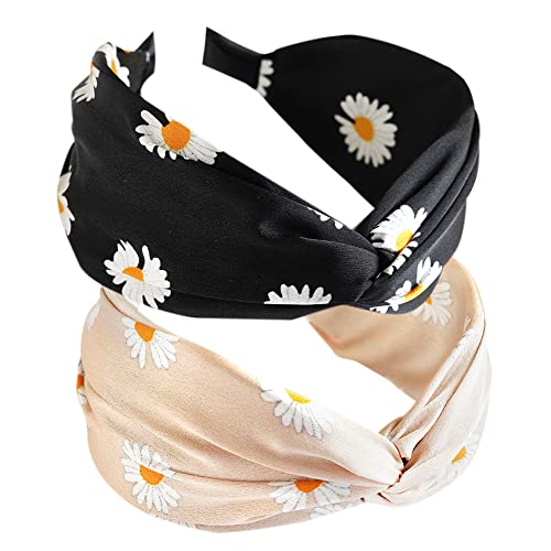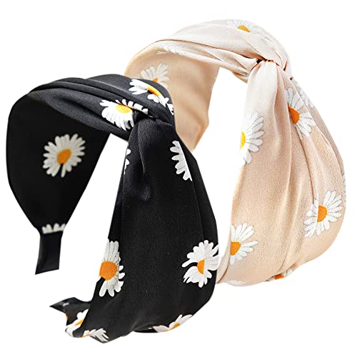 2PCS Fasce per capelli da donna Boho Headband Wrap Tie Fashion Hair Scarf Bow Tie Accessori per capelli in tessuto antiscivolo Fasce per capelli Alice Wide per donne Uk e ragazze (FlowerDE)