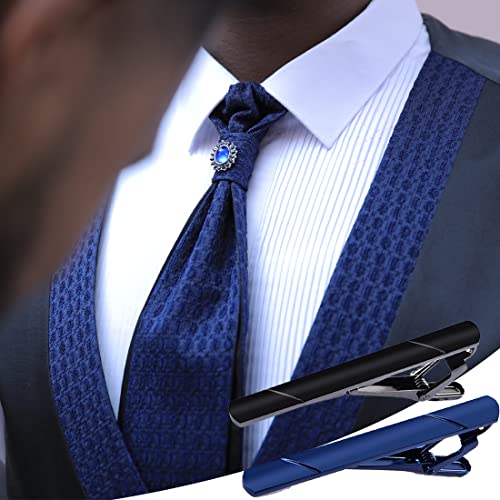 2pcs fermacravatta per uomo fermacravatta in metallo rame classico per San Valentino, Natale, matrimonio affari bar e vita quotidiana (blu+nero)