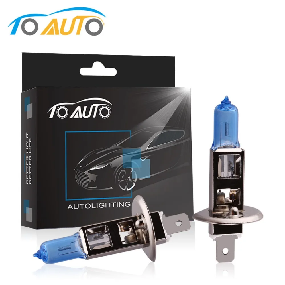 2pcs H1 55W 12V Halogen Bulbs Car Headlight Lamp Super Bright White Quartz Glass Car Lights Auto Headlamp