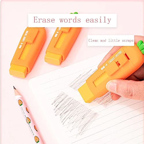 2Pcs Kawaii Creative Carota Push Pull Matita Gomme Pittura Senza Polvere Scrittura Gomma Scuola Forniture per Ufficio Divertente Regali di Cancelleria