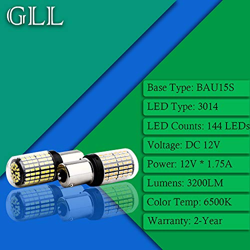 GLL 2pcs Lampadine Bianco BAU15S LED, 7507 1156PY PY21W LED Canbus, Super Luminoso 144-3014-SMD 2800 Lumen, Utilizzato Solo per Indicatori di Direzione (12V DC)