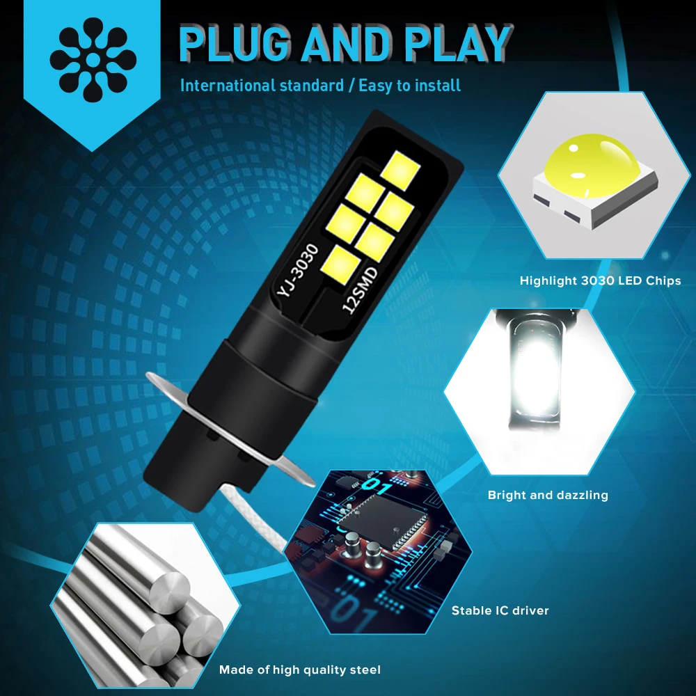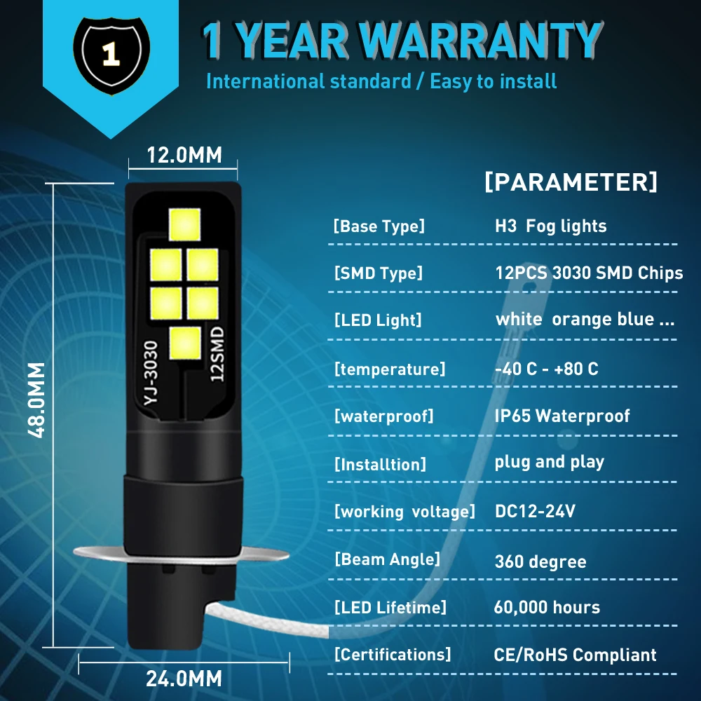 2pcs LED H3 Fog Light Bulbs 1000LM A Pair Auto Car Driving Lamp Lights 6000K White IP65 LED 3030 Chip Fog Light Driving Bulb