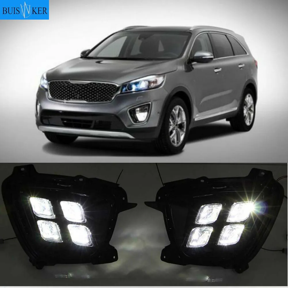 2pcs Day Light Daytime Running Lights For Kia Sorento 2015 12V ABS LED DRL Fog Lamps Cover Driving Lights Accessories