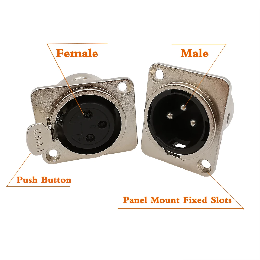 2Pcs Metal Square 3Pin XLR Plug Jack Audio Cable;