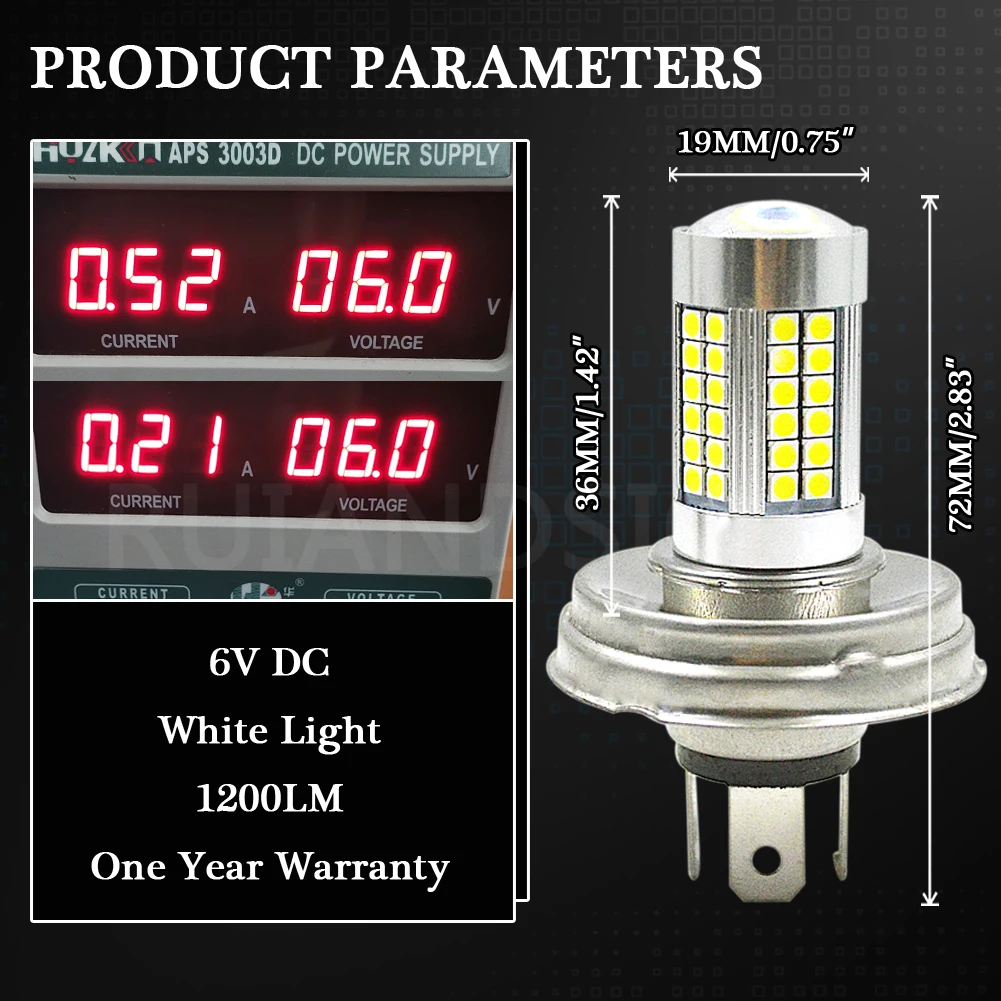 2pcs Motorcycle P45T High/Low Bixenon Beam LED Headlight Lamp for Scooter Moped White 12W LED 6V 10-30V ED Motorbike bulb