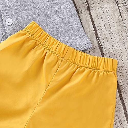 2pcs Neonato Ragazzi Ragazza Completini, Increspato Manica Corta Bowtie Camicia + Solido Pantaloncini Fascia (Giallo (Neonato), 18-24 Mesi)