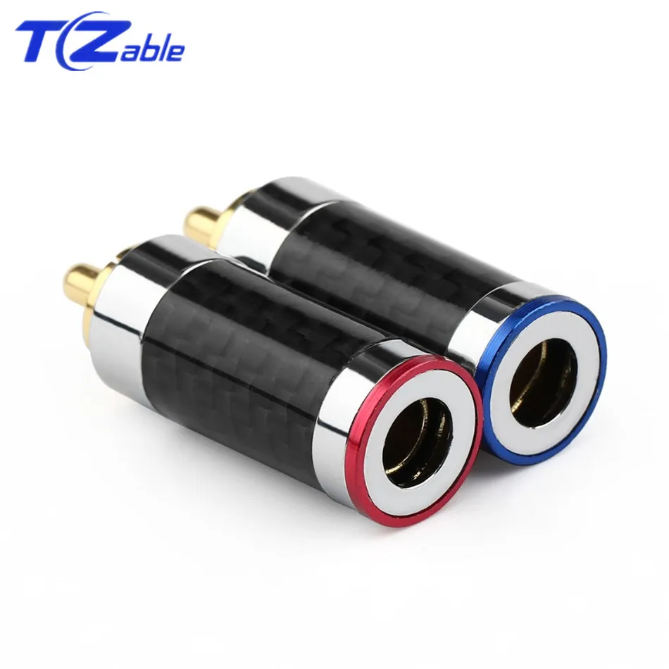 2pcs Plug RCA Connector Carbon Fiber Audio Jack Gold Plated Copper Splice Adapter Solder Wire Connectors RCA HiFi Speaker Male