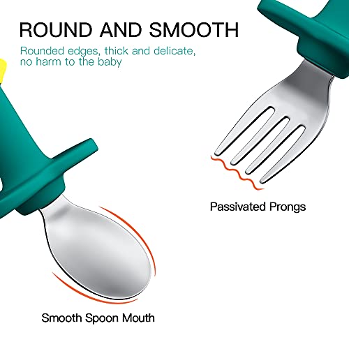 【Attenzione Alla Sicurezza】 - Il pacchetto set posate bambini è composto da Gel di silice e SUS 304, senza BPA, piombo e ftalato. Il cucchiaio e la testa della forchetta sono lisci e non faranno male al bambino. Se siete alla ricerca di un set di piatti sicuri per i bambini, questo è il momento. Che è anche un regalo per il bambino.