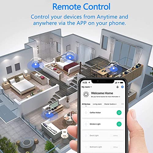 E controlla da remoto qualsiasi dispositivo connesso alla presa wifi di casa tua tramite l'app mobile. Nessun hub richiesto, supporta solo la rete Wi-Fi a 2,4 GHz.