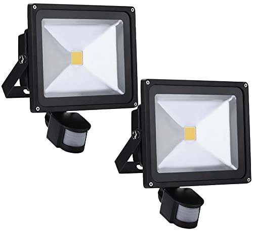 2pcs 30W Proiettore LED con Sensore di Movimento,ALPHA DIMA Faretto LED Esterno Bianco Freddo 6500K,faro LED IP65 Ideale per il Giardino,Cortile,Corridoio,Parete,ecc