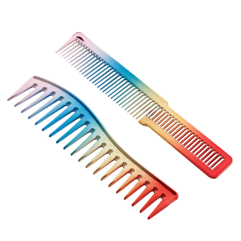 2PCS Rainbow Comb Electroplating Hairdressing Comb Scalp Massage Hair Brush Large Wide Tooth Comb Salon Haircut Tool