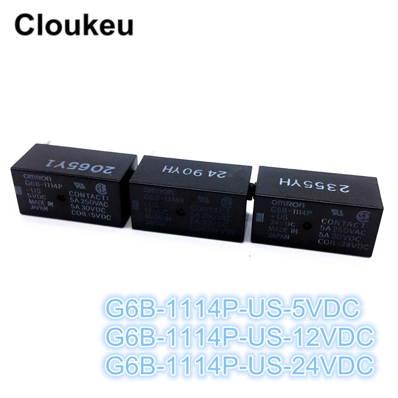 2Pcs Relay DIP4 G6B-1114P-US- 5VDC 12VDC 24VDC DC5V DC12V DC24V 5A