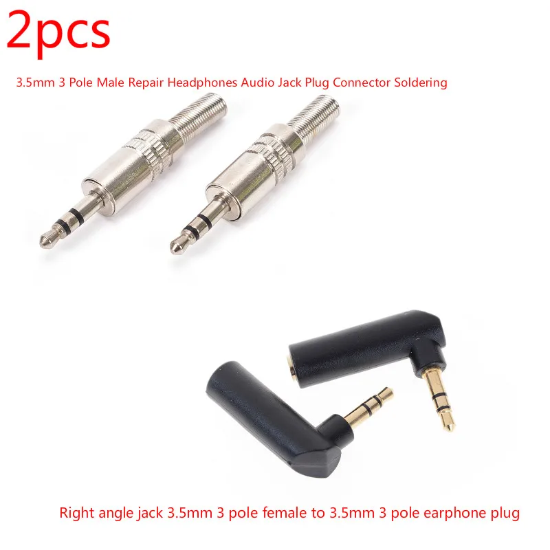 2PCS Sliver Gold 3.5mm 3 Pole Stereo 90 Degree Right Angle Female To 3.5mm 3Pole Male Audio Plug L Shape Jack Adapter Connector