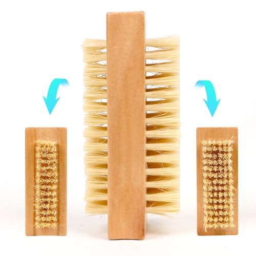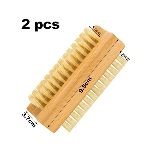 2Pcs Spazzolina Per Unghia,Pazzola Unghie Mani Doppia Faccia,Spazzola Per Unghie Mani,Pennello Per Unghie In Legno Con Setole Naturali,Facile da Rimuovere Lo Sporco,9.5 x 3.7 cm