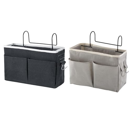 2Pcs Tasche da Letto Appendibile, Borsa da Comodino, Portaoggetti da Appendere al Comodino, Portaoggetti Appendere In Tessuto Borsa per Camera da Letto Bagno Cucina Libro Cosmetico (Nero+Grigio)
