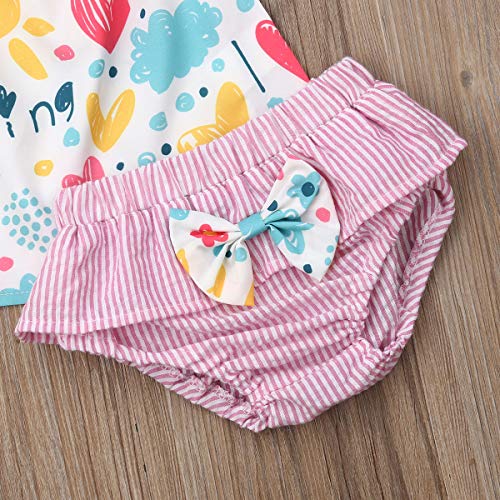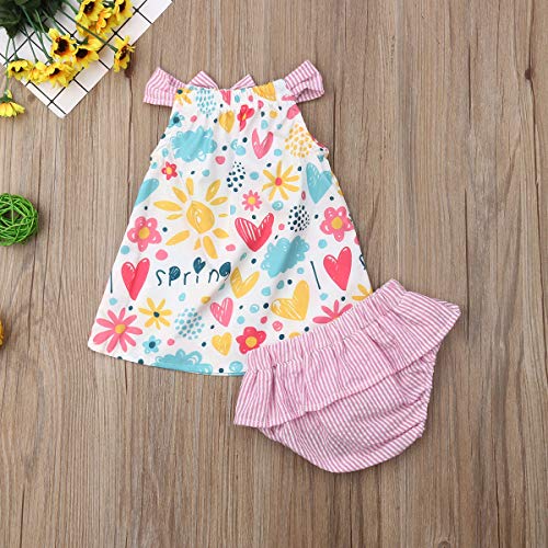 2PCs Toddler Newborn Baby Girl Outfit Canotta T-Shirt Sling Top Flower Crawling Pants Princess Tutu Skirt Costume Suit Girl Camicia Casual Shorts Set (Rosa, 0-6 Mesi)