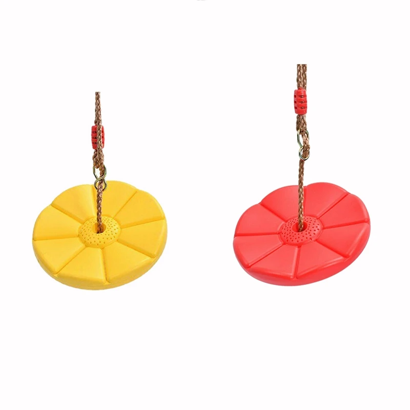 2PCS Tree Swing Climbing Rope with Platforms Disc Swings Seat Kids Disc Swing Seat Backyard Playground, Red & Yellow