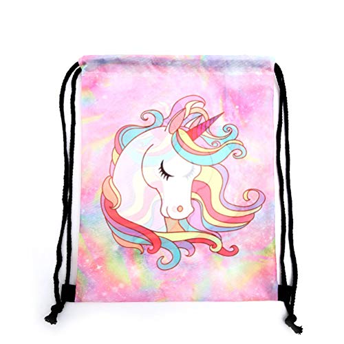 2pcs unicorno zaino con coulisse 3d stampato bouquet tasca pacchetto tasca trucco borsa set sacchetto di fitness custodia cosmetica (rosa)