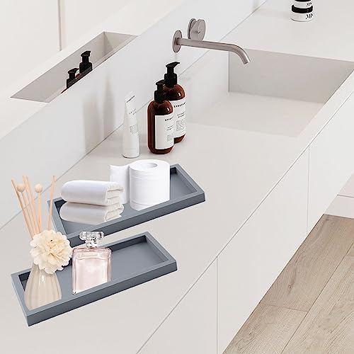 2pcs Vassoio da Bagno, Vassoio Portaoggetti da Bagno, Vassoio Toeletta Portaoggetti Vassoio Decor, Rettangolare, per Organizzare Profumo Gioielli Cosmetici Sapone (20 * 10 * 1.8cm, Grigio)