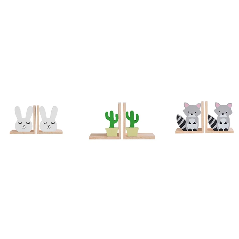 2Pcs Wooden Bookends Support Stand Student Book Storage Shelf Home Decoration