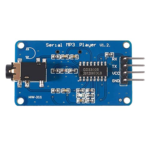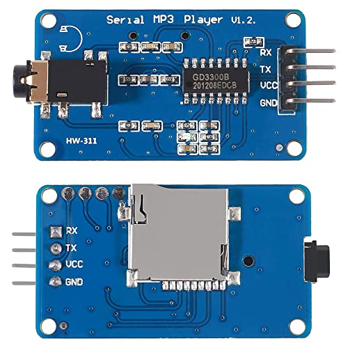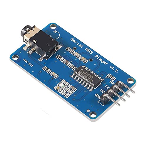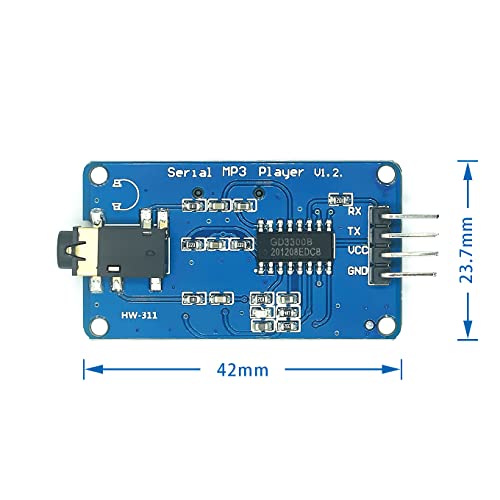 【Alte prestazioni】 30 volume regolabile della classe UART Modalità di riproduzione controllo seriale TTL, velocità di trasmissione di 9600 bps L'alimentazione può essere di 3,2 ~ 5,2 V CC Dimensioni: 43 mm x 25 mm