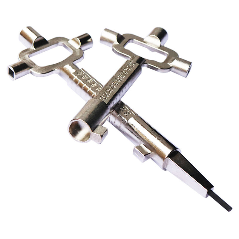 MATERIALE ECCELLENTE: Questa chiave inglese è realizzata in acciaio di alta qualità, il materiale è sicuro e duro e la superficie è placcata in nichel brillante, che ha una buona resistenza alla corrosione ed è durevole. CONCETTO DI DESIGN: La punta di questa chiave universale strutturale ha una chiave a brugola da 3 mm e un ingranaggio corto con una camma piatta e 3 unità quadrate sulla parte superiore. Allo stesso tempo, ha una scala di misurazione, che è molto comoda. PARAMETRI DEL PRODOTTO: 3 tasti quadrati, la dimensione è 6, 7 e 8 mm. Serve per controllare la valvola di riscaldamento o per aprire la griglia di ventilazione;