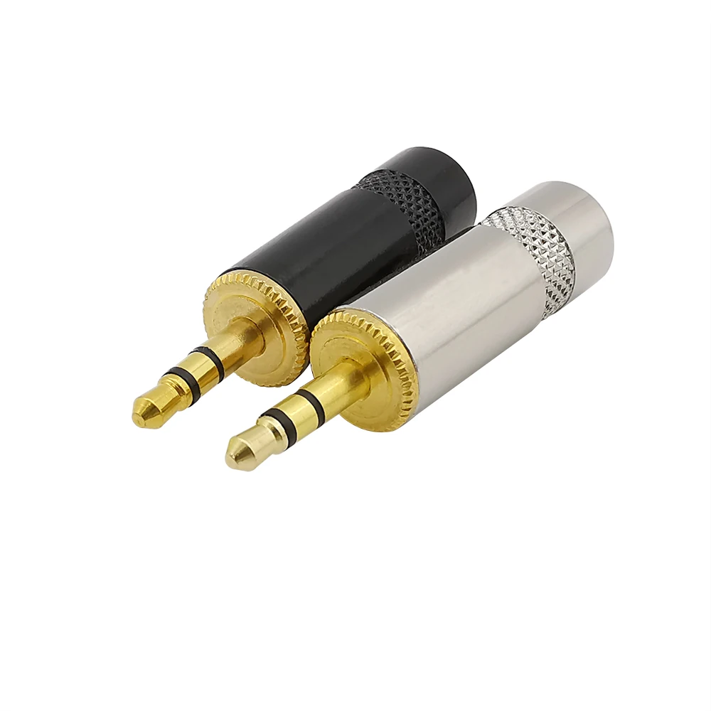 2Pcs/Lot 3.5mm Headphone Plug Audio Wire Solder Connectors Silver Black 3.5mm Jack 3Pole Stereo HiFi Earphone Male Plug Adapter