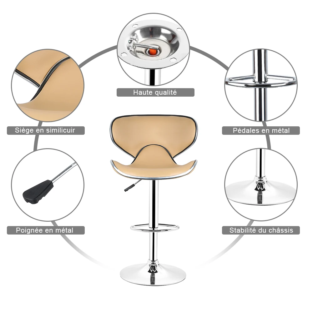 2pcs/set High Quality Butterfly Backrest Bar Chairs PU Leather Stool Gas Lift Height Adjusted Rotatable Kitchen Accessories HWC