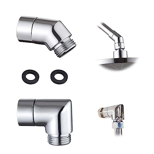 2Pezzi Adattatore per Doccetta Angolo,Doccetta Adattatore 90 Gradi+135 Gradi,Adattatore Doccetta per Doccia,con 2 Rondelle,per 1/2" Connettore Soffione Tubo Standard Comune per Docce (Argento)