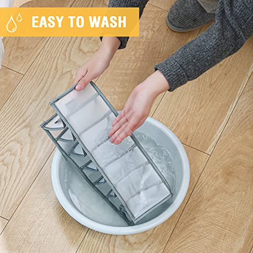 2Pezzi Organizer Per Cassetti Pants Storage 7 Griglie Porta Jeans Armadio Pieghevoli per armadio con Scomparti, Divisori Cassetti in Rete Lavabile (gray)