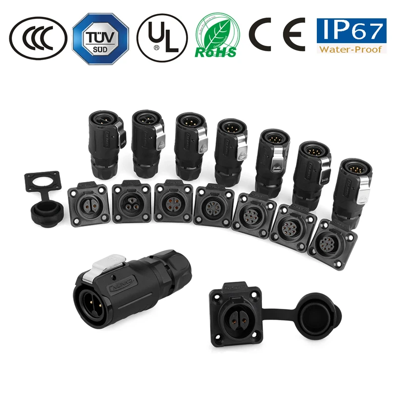2pin 3pin 4/5/7Pin IP67 Waterproof Sealed Circular Electrical Power Plugs and Sockets 12V DC Panel Mount Plastic Cable Connector
