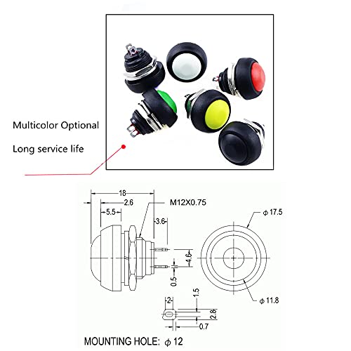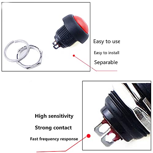 1 PZ 2PIN MINI SWITCH 12MM 1A Interruttore impermeabile PBS33B 12V Pulsante Pulsante Momentaneo Ripristino non bloccante PBS-33B-black