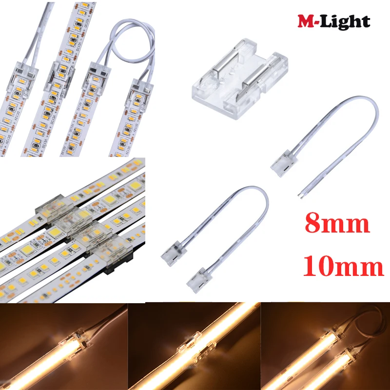 2Pin COB LED Strip Connector 8mm 10mm Single Color 5050 3528 5630 Tape Light Strip to Wire FOB Corner Connectors No welding 5PCS
