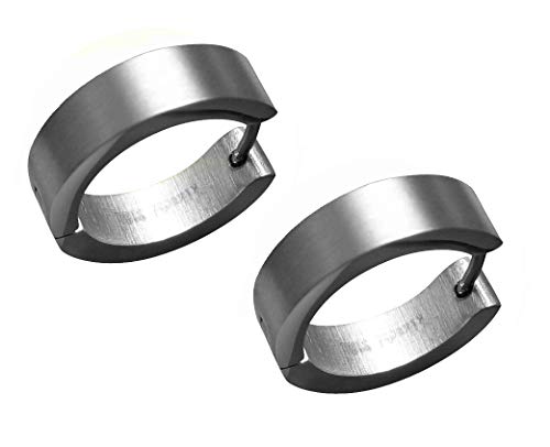 2Stk. classico orecchini a cerchio in argento opaco orecchini uomo in acciaio inox 5 mm/18 mmø di Kikuchi