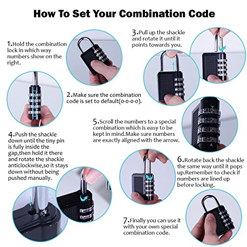2xCombinazione Lucchetto Della Serratura, GOCHANGE Lucchetto con Combinazione 4 Cifre/Lucchetto per Armadietto,Lucchetto Palestra, Sacchetto Lock / Metallo( Nero )